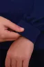 Блузка для девочек младшего школьного возраста, из однотонного трикотажного полотна - однотонная кулирка с лайкрой и шифона. Блузка полуприлегающего силуэта, с рукавом из шифона, без застежки. Спереди жабо со складками из шифона с декоративным элементом по центру. На спинке отсутствуют линии членения. Рукав длинный одношовный, присборенный по окату и низу, на манжете. Низ изделия подогнут. Срез горловины окантован.