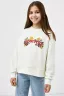 Очаровательный джемпер прямого силуэта для девочек. Выполнен из легкого трикотажного футера. Вырез круглый, классический, не глубокий. Рукава длинные, с широкими манжетами. Спущенная линия плеча дарит особый комфорт. Стильно!