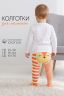 Яркие колготки для малышей. Оригинальная расцветка в полоску - по одной ножке широкая полоса, по другой - узкая. На стопе вывязаны милые лапки, сзади - мордочка спящего лисенка