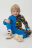 Костюм Дино состоит из свитшота с принтом и брюк. Изделия выполнены из набивного футера, что поможет ребенку не бояться прохладной погоды. Комплект слегка прилегает к телу, не раздражает кожу и легок в уходе. При стирке не деформируется и не пилингуется.