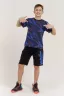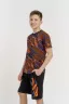 Костюм для подростков состоит из двух изделий - футболки и шорт. Футболка выполнена из ткани с абстрактным принтом. Футболка прямого свободного кроя, круглый вырез горловины, втачной рукав. Шорты выполнены из футера 2-х нитки, прямого кроя, с удобной посадкой. На передней половинке шорт - печать.