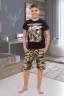 Костюм для мальчика состоящий из футболки и удлинённых шорт. Горловина обработана эластичной рибаной. Костюм предназначен для повседневного использования, так же может быть использован в качестве оригинального подарка. Футболка украшена современным принтом - морпехи.