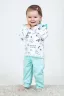 Детская пижамка для девочек, идеальный комплект для сна. Данная модель обеспечит Вашей малышке тепло, уют и, что очень важно, здоровый крепкий сон. Кофточка свободного кроя с длинными рукавами, в комплекте с простыми и легкими брючками. Низки рукавов и кофты отделаны мягким кружевом. Штанишки на манжете.