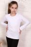 Блузка для девочек дошкольного, младшего и старшего школьного возраста, из однотонного трикотажного полотна кулирка с лайкрой. Блузка прямого силуэта, с втачным рукавом, без застежки. Спереди и на спинке отсутствуют линии членения. На передней части джемпера настрочено кружево по линии груди. Срез горловины обработан узкой окантовочной лентой из того же полотна в 4 сложения. Рукав одношовный, длинный. Низ рукава без манжеты, подогнут. На кружево приклеены 3 полубусины.