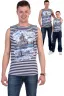 Мужская майка из кулирки. Майка-тельняшка с принтом в виде изображения атомного ракетного крейсера и двух ракетных подводных крейсеров стратегического назначения. Обратите внимание, оттенок полосы может отличаться от представленного на фото. Может быть парой детской майке Сторожевой (продается отдельно). Размеры от 44 до 60. Возможна розница.