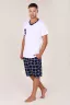 Этот мужской костюм представляет собой комплект для повседневного или домашнего использования, состоящий из белой футболки свободного кроя и темно-синих шорт в клетку. Основные характеристики Материал: Обе составляющие части выполнены из 100% хлопка, что обеспечивает комфорт, воздухопроницаемость и гипоаллергенность. Футболка: Белого цвета, свободного кроя (оверсайз), что подразумевает более широкую и длинную модель по сравнению с классическими футболками. Она оснащена накладным карманом на груди. Шорты: Темно-синего цвета с рисунком в клетку. Имеют карманы и пояс на резинке. Размерный ряд: Представлен в широком ассортименте размеров, включая большие размеры (от 48 до 62). Этот комплект сочетает в себе стиль и практичность, идеально подходит для отдыха или неформальных мероприятий.