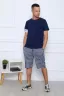 Костюм мужской: футболка с короткими рукавами, на правом рукаве стильный декор с печатью, шорты до колена, на широком эластичном поясе, с удобными боковыми карманами.
