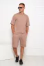 Костюм мужской из футера 2-х нитки: шорты на эластичном комфортном поясе, с боковыми карманами и футболка прямого кроя, со слегка спущенным плечом, с принтом по низу полочки. Данный трикотаж имеет низкую сминаемость и презентабельный вид.