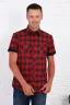 Рубашка мужская с черно-красной клеткой, рукав короткий с манжетом, на груди 2 кармана с пуговицами, низ рубашки овальный.