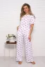 Женская пижама с брюками свободного кроя. Очаровательный принт с сердечками подарит отличное настроение. Хлопковый трикотаж обеспечит комфорт. Размеры 46-54.