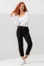 Классические женские брюки бананы имеют эластичный пояс на резинке, боковые карманы с отрезным бочком, элегантную прострочку по центру штанин, которая визуально удлиняет ноги. Благодаря высокой посадке легкие брючки помогают создать женственный силуэт. Строгие укороченные бриджи не скатываются и не линяют, держат форму и не мнутся, а колени не вытягиваются даже спустя время.