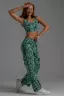 Брюки прямые, на поясе, с боковыми карманами. Декоративные клапаны расположены по бокам брюк.