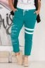 Джоггеры – это брюки на резинке. В бедрах они свободны, а к низу сужаются. Сегодня их носят все модницы и ни один стильный женский образ не обходится без этого тренда. Брючки с прекрасной посадкой, пояс регулируется декоративным шнуром. Длина 3/4.