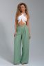 Брюки-палаццо – мастхэв базового женского гардероба. Модель выполнена из качественной льняной ткани. Материал прочный, приятный на ощупь, хорошо струится и дышит. Изделие представлено в классических модных цветах. Широкий крой со складками и высокой талией создает красивый силуэт и обеспечивает удобную посадку, на любой тип фигуры. Пояс выполнен на специализированной поясной машине, что добавляет изделию качество на долгое время и эстетичность. На брюках имеются боковые карманы с усиленными закрепками на закрепочной машине. На модели представлен 46 размер - фигура соответствует параметрам размера. УХОД ЗА ИЗДЕЛИЕМ: бережная стирка при максимальной температуре 30ºС, не отбеливать, машинная сушка запрещена, глажение при 110ºС, профессиональная сухая чистка, стирать вывернутым наизнанку, глажение с использованием специальной сетки, стирать с изделиями похожих цветов . Брюки такого плана идеально впишутся в городской стиль, элегантность и комфорт, женственные силуэты и мягкие линии, расслабленные, нарочито небрежные образы, стильные и комфортные. Широкие брюки со складками – модная одежда для женщин на любой случай жизни. Подойдут для стильных повседневных луков, офисных аутфитов, нарядных вечерних образов и прогулок.
