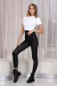 Легинсы из стрей - кожи благодаря очень эластичной ткани моделируют силуэт и позволяют создать стильный, актуальный образ. Высокий корсетный пояс с крючками имеет утягивающий эффект. В леггинсах можно заниматься спортом, а также, в комплекте с соответствующим верхом, они подойдут для любого мероприятия.