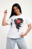 Футболка женская из гладкокрашенного трикотажа, хлопок 100%. Прямого силуэта, свободного облегания. горловина круглой формы. Рукав короткий. Низ изделия прямой. На полочке принт, шелкография.