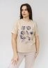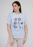 Футболка для женщин прямого силуэта, длиной до середины бедер. Рукав втачной, короткий. Горловина округлой формы. Полочка футболки украшена принтом.