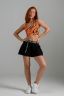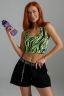 Топ на узких бретелях, с округлой горловиной на полочке и вырезом "борцовка" сзади. Горловина, проймы и вырез на спинке обработаны бейкой из основного полотна.