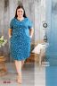 Халат на пуговицах со спущенной проймой, горловина и короткий рукав отделаны кантом, как и вход в боковой карман. Средней длины ниже колена. На модели размер 52