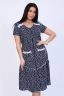 Халат из набивной кулирки в мелкий горох, прямого силуэта на молнии. Длина ниже колена, рукав короткий. Карманы украшены кружевом.