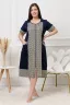 Халат на молнии, полуприталенного силуэта, длиной ниже колена, с округлой горловиной, с фигурными боковыми карманами. Полочка и спинка с вертикальными рельефами. Рукав втачной, короткий, с разреами и манжетом из отделочного полотна. Горловина и карманы обработаны бейкой.
