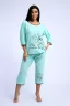 Симпатичный махровый костюм из футболки и бриджей. Футболка с рукавом-реглан длиной 3/4, на полочке изображение совы на фоне луны и звезд. Бриджи свободные, на резинке, с боковыми кармашками, на одной половинке - изображение маленькой совы.