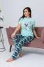 Костюм женский состоит из футболки с коротким рукавом из ткани кулирка гладь, на полочке красивый принт, и брюк из ткани кулирка, принт - клетка. Костюм для дома, отдыха, комфортный, удобный, не меняет цвет после стирки.