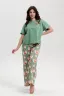 Красивый женский костюм двойка от ивановского производителя состоит из футболки и брюк в стиле палаццо. Этот стильный домашний комплект выполнен из мягкого и приятного на ощупь трикотажного материала из 100% хлопка. Он идеально подойдет для осеннего и весеннего сезонов. Эта женская пижама с брюками кюлотами сочетает женственность и удобство. Отличный выбор для повседневного использования дома и сна. Брюки клеш придают образу особый шарм и делают костюм популярным среди молодежи и подростков. Благодаря широким брюкам, пижама выглядит модно и трендово. Этот ночной комплект предлагается в нескольких размерах, включая большие размеры, и подходит стройным девушкам и женщинам, а также полным дамам plus size. Благодаря свободному крою и удобным брюкам трубам, он также идеально подойдет для беременных женщин, давая им свободу движения и комфорт в домашних условиях. Хлопковая пижама изготовлена из качественного турецкого трикотажа (кулирка), который приятен к телу и обеспечивает комфорт во время ночного отдыха. Она подойдет для любого времени года, особенно на осень, весну, зиму. Этот удобный и стильный комплект пижамы с брюками станет отличным выбором для роддома, повседневного отдыха дома или даже для новогодней фотосессии и пижамной вечеринки. Сочетание комфорта, красоты и функциональности делает эту пижаму невероятно привлекательной. Домашний костюм, пижама - это прекрасный подарок себе, маме, сестре, бабушке, жене на новый год, день рождения или без повода.
