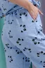 Костюм состоит из туники и брюк. Туника с округлой горловиной, обработанной отделочной рибаной. На полочке расположен декоративный карман с молнией. Рукав короткий. Горловина спинки обработана бейкой из основного полотна. Брюки прямые, на поясе, с боковыми карманами.