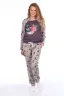 Уютная женская пижама с брюками и кофтой из полуприлегающего кроя. Дизайн позволяет использовать данную модель как пижаму для сна, так и в качестве костюма для дома. Модель выполнена из высококачественного интерлока.