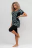 Женский костюм полуприлегающего силуэта состоит из туники и бриджей. 100% дышащий хлопок туники и эластичная вискоза бриджей несут в себе удобство при носке, гигроскопичность и износостойкость. V-образный вырез горловины придаёт изделию женственный вид. Для удобства туника имеет вместительные накладные карманы и втачные рукава с манжетами. Рельефы на полочке изделия создают идеальную посадку и безупречный внешний вид. Бриджи на резинке с высокой посадкой. В костюме такого плана Вы будете чувствовать себя комфортно как дома, так и на любимой даче. Эта двойка идеально подойдет для летнего отдыха на даче, на море или просто для девушек, которые хотят чувствовать себя уютно и комфортно дома. Летний женский костюм подходит для поездок и путешествий, загородного отдыха на природе, а также для получения лечения в больнице или санатории. Повседневное хлопковое изделие с бриджами - отличная идея для подарка любимой жене, маме, сестре или подруге на день рождения, 8 Марта или по любому другому приятному поводу. Рекомендация: для того чтобы продлить яркую жизнь Вашему костюму для дома и отдыха из хлопка, стирку производить при температуре не выше 30 градусов, а во избежание деформации изделия не прибегать к ручному отжиму (не перекручивать), утюжить слегка недосушенное изделие утюгом на паровом режиме. Покупайте наши красивые и удобные домашние костюмы с бриджами и носите с удовольствием! Приятных покупок!