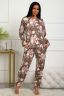Костюм женский из трикотажа. Ткань масло, производство Турция. Блуза прямого силуэта. Свободного кроя. Рукав длинный. Линия плеча на естественном месте. Горловина круглой формы. Низ изделия прямой. Брюки свободного кроя, с карманами в боковых швах, зауженные к низу. Длина брюк до щиколотки. Пояс мягкий.