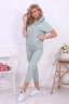 Очень хороший костюм, пошив идеальный. Нитки не торчат, строчки ровные, ткань дышащая, не жарко. Цвет брала ментол, соответствует фото. Я довольна покупкой.