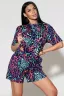 Дизайн костюма включает в себя абстракцию леопарда, что придает ему стильный и модный вид. Комбинация оттенков фиолетового создает яркий и свежий образ, который подчеркнет ваш индивидуальный стиль.