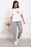 Костюм женский: футболка свободного кроя, с короткими рукавами и с лаконичным принтом на груди; брюки укороченные с боковыми карманами, на эластичном поясе. Данный костюм вместе с мужским костюмом (арт. 1039) составляет образ Family look.