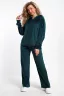 Костюм женский велюровый состоит из толстовки на молнии и брюк. Толстовка с глубоким капюшоном, по низу утягивающий шнур с фиксаторами, рукав спущенный с манжетом, брюки прямые с карманами. Костюм мягкий, удобный, отлично подойдет для дома, прогулок и отдыха.