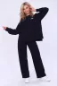 Модный женский костюмчик из плотной ткани. Брюки свободные с карманом, широкие внизу. Кофта свободная по боковым швам разрез. Спинка длиннее, что делает модель модной и стильной. Рукав длинный со складочками на манжете. На груди принт не броский, но придающий вид.