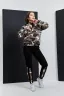Костюм состоит из толстовки и брюк. Толстовка, с воротником, с молнией до середины полочки, низ собран на резинку. Рукав реглан, длинный, низ на резинке. Брюки, на поясе, с боковыми карманами, с резинкой по низу. В нижней части брюк расположены вставки из отделочного полотна.