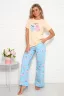 Пижама женская: футболка с короткими рукавами и очаровательной печатью на полочке, брюки-палацио на эластичном поясе, с боковыми карманами. Роскошный силуэт и комфорт хлопкового трикотажа.
