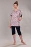 Домашний костюм с удлиненной футболкой с коротким рукавом и бриджами с боковыми карманами.