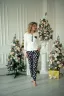 Пижама приталенного силуэта. Кофта с длинным, вточным рукавом, на рукаве декоративная печать в стиле шелкографии с добавлением глитерра, на горловине имеется планка с застежкой на клепках. Брюки на резинке с карманами.