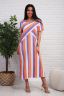 Платье из натурального набивного трикотажа. Силуэт прямой. Длина миди. Рукав короткий. Горловина круглая. На полочке фигурные подрезы. Карманы и разрезы в боковых швах.