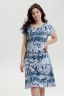 Платье женское средней длины выполнено из кулирки 100% хлопок оригинальной расцветки. Рукав спущенный, в боках карманы, горловина обработана узким кантом.