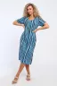 Платье полуприлегающего силуэта с V - образным вырезом горловины и короткими рукавами. В боковых швах разрезы и удобные карманы.