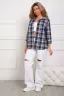 Рубашка женская свободного кроя в эко стиле (100% хлопок). Комфортный рукав 3/4 с широким манжетом. Центральная встречная складка на спинке. Воротник со свободной посадкой, без фиксации на пуговицу. Хлопок - 100%, ткань - шотландка (по фактуре похожа на полулён, даёт незначительную усадку, утюжится легко). Стиль, комфорт, отлично сочетается с денимом и классикой. Оптимальный выбор для лета и на все сезоны.