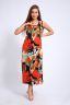 Сарафан женский выполнен из трикотажного полотна кулирка. Сарафан полуприлигающего силуэта, расширенный к низу. Без рукава, прорезные карманы в боковых швах. Горловина, пройма, вход в карман окантованы отделочной ткань. Разрезы в боковых швах, длина ниже колена.