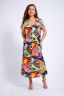 Сарафан женский выполнен из трикотажного полотна кулирка. Сарафан полуприлигающего силуэта, расширенный к низу, на полочке рельефы, карманы в подрезных бочках, рукав короткий, отложной воротник, V-образный вырез горловины, застежка на пуговицы, разрезы в боковых швах. Длина ниже колена.