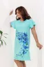 Сорочка женская с симпатичной рюшей по горловине. Очень свободный и удобный крой. Рукав - реглан не стесняет движения рук. Обработка рукава и низа изделия в виде лёгкой волны придаёт лёгкость и воздушность. Шикарный принт в виде россыпи незабудок. Оттенок ментола может отличаться от фото