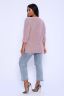 Заказанный 54 размер на 104/87/114 сел отлично. Цвет пудра нежный и тактильно тоже, джемпер просто восторг. Может вот только ворот широковат, но смотрится очень изыскано.