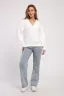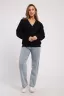 Свитшот свободного кроя с длинными рукавами на манжетах и V - образным вырезом горловины.
